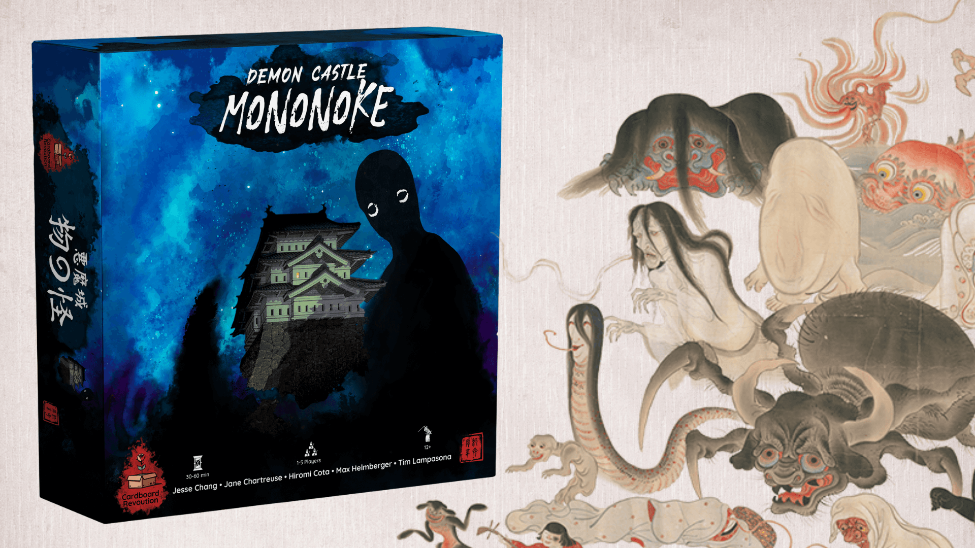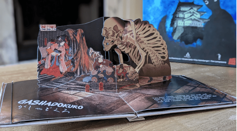 Hey Reader! David Kessler here. Demon Castle Mononoke is live!Congratulations to designers Jane Chartreuse and Tim Lampasona who have recently launched Demon Castle Mononoke on Gamefound. It’s a cooperative survival game in which 1-4 players struggle to survive in a ruined castle as it is besieged by a powerful Mononoke and Yōkai from Japanese mythology. It can be played solo, co-op, or all vs. one with one player acting as the powerful Mononoke. During the day, Lost Souls explore the ever-shifting castle, gaining health, weapons, or magical abilities in anticipation of the impending nightly Yōkai attacks. Every night gets harder. The Yōkai are unrelenting, the battlefield is always changing, and there is no safe place. Enemies in the game literally pop out of the Book of Demons, designed by paper engineer and artist, Dario Cestaro. The art looks fabulous, to match the intriguing gameplay. This game would not exist without Protospiel! So many incredibly valuable playtests happened at Protospiel Online events. The designers had an absolute blast creating this game. It was a true labor of love, pulling from all of their favorite interests. They cannot wait to share it with the world. In fact, you can try it for yourself right now on Screentop. Demon Castle Mononoke is brought to you by Cardboard Revolution, a worker owned co-op.